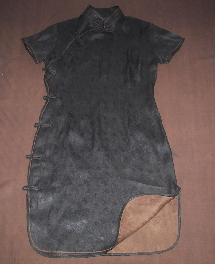 • 产品名称 女式短袖100%桑蚕丝香云纱中旗袍